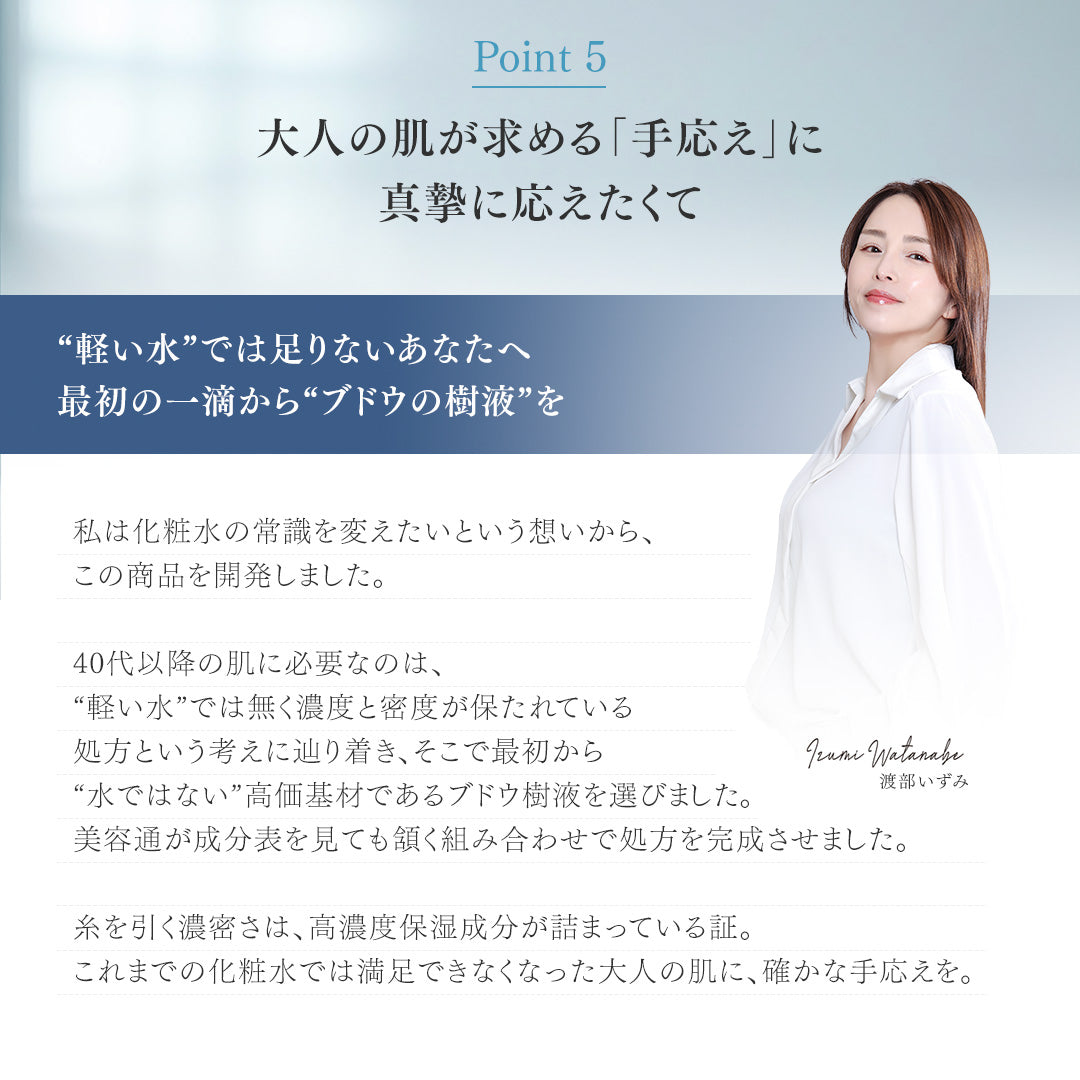 肌全体に含ませるイメージで丁寧に馴染ませてください。